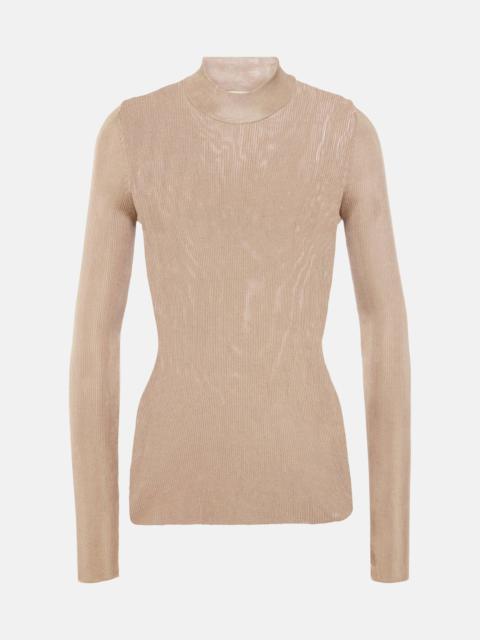 LONG-SLEEVE RIB-KNIT SWEATER FEATURING A MOCK NECK DECORATED WITH METAL YSL INITIALS. - 100% SILK - MOCK NECK - STYLE ID 654478Y75AI9610 - MADE IN ITALY