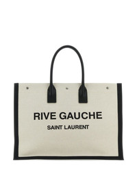 Rive Gauche tote bag Highlights - Beige/black - Cotton-linen blend - Canvas - Logo print to the front - Leather top handles - Main compartment - This piece comes complete with a protective dust bag. Made in Italy Composition Outer: Cotton 45%, Linen/Flax 45%, Calf Leather 10% SIZE & FIT Measurement DEPTH 6.69 in(17 cm) HEIGHT 13.77 in(35 cm) WIDTH 18.89 in(48 cm) HANDLE 5.9 in(15 cm)