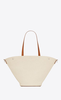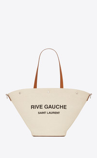 RIVE GAUCHE TOTE BAG MADE WITH ORGANIC COTTON, FEATURING AN INTERIOR ZIP POCKET AND THREE SAINT LAURENT-ENGRAVED SNAP BUTTON CLOSURES. - 50% COTTON, 40% CALFSKIN LEATHER, 10% METAL - ORGANIC COTTON - DIMENSIONS: 30 X 50 X 12 CM/ 11.8 X 19.6 X 4.7 INCHES - HANDLE DROP: 25 CM - SILVER-TONED METAL HARDWARE - SNAP-BUTTON CLOSURE - INTERIOR: ONE MAIN COMPARTMENT, ONE ZIP POCKET - COTTON LINING - STYLE ID 812857230 - MADE IN ITALY