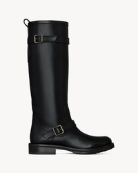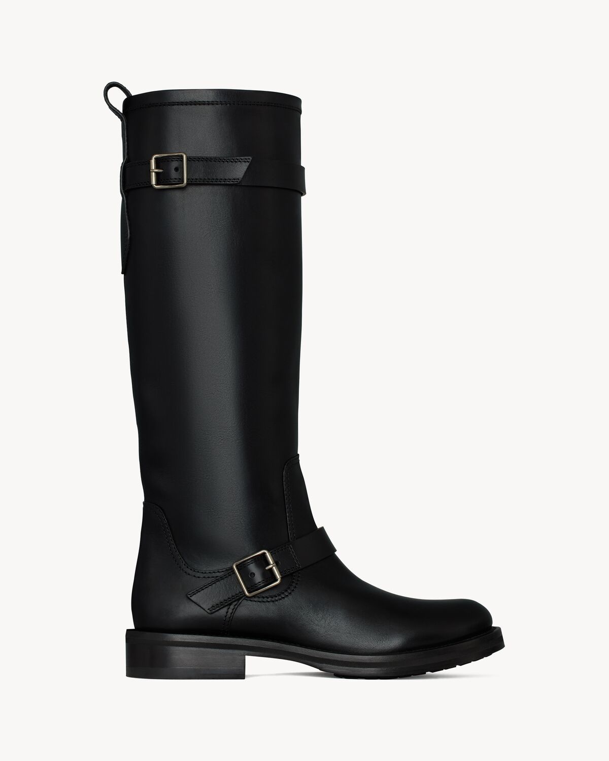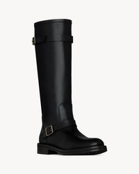 FLAT BIKER BOOTS WITH BUCKLES AND A BACK PULL LOOP, FEATURING A ROUND TOE AND STACKED HEEL. - LEATHER SOLE - TOTAL HEEL HEIGHT: 2.5 CM / 0.9 INCHES - CALFSKIN LEATHER, BRASS - STYLE ID 80042428N001000 - MADE IN ITALY