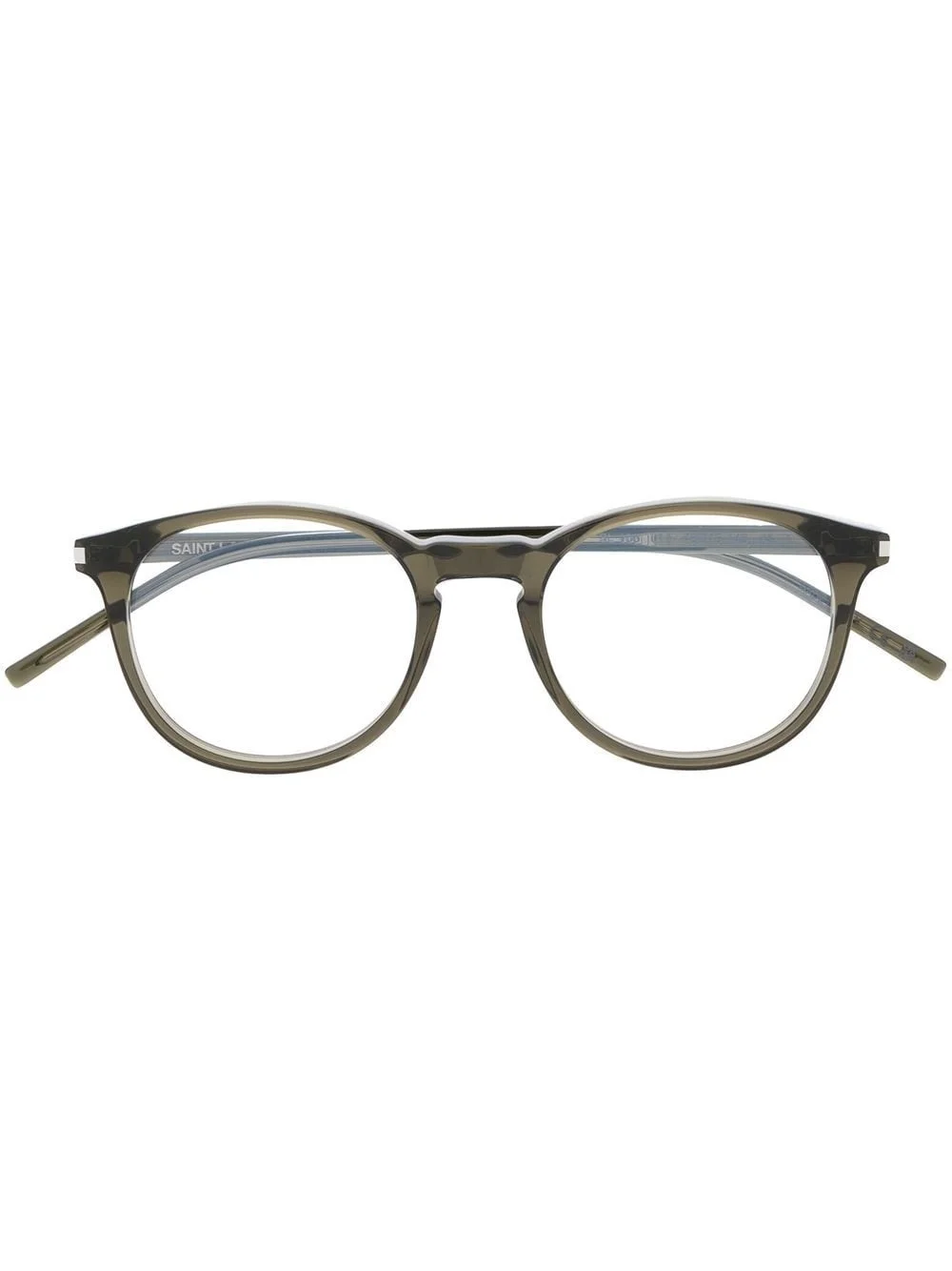 round-frame glasses light green round frame clear lenses straight arms These glasses come with a protective case. All glasses from FARFETCH are sold as non-prescription frames. Made in Italy Composition Acetate 100% SIZE & FIT Measurement Arm Length 5.7 in(14.5 cm) Bridge Width 0.74 in(1.9 cm) Lens Diameter 1.88 in(4.8 cm)