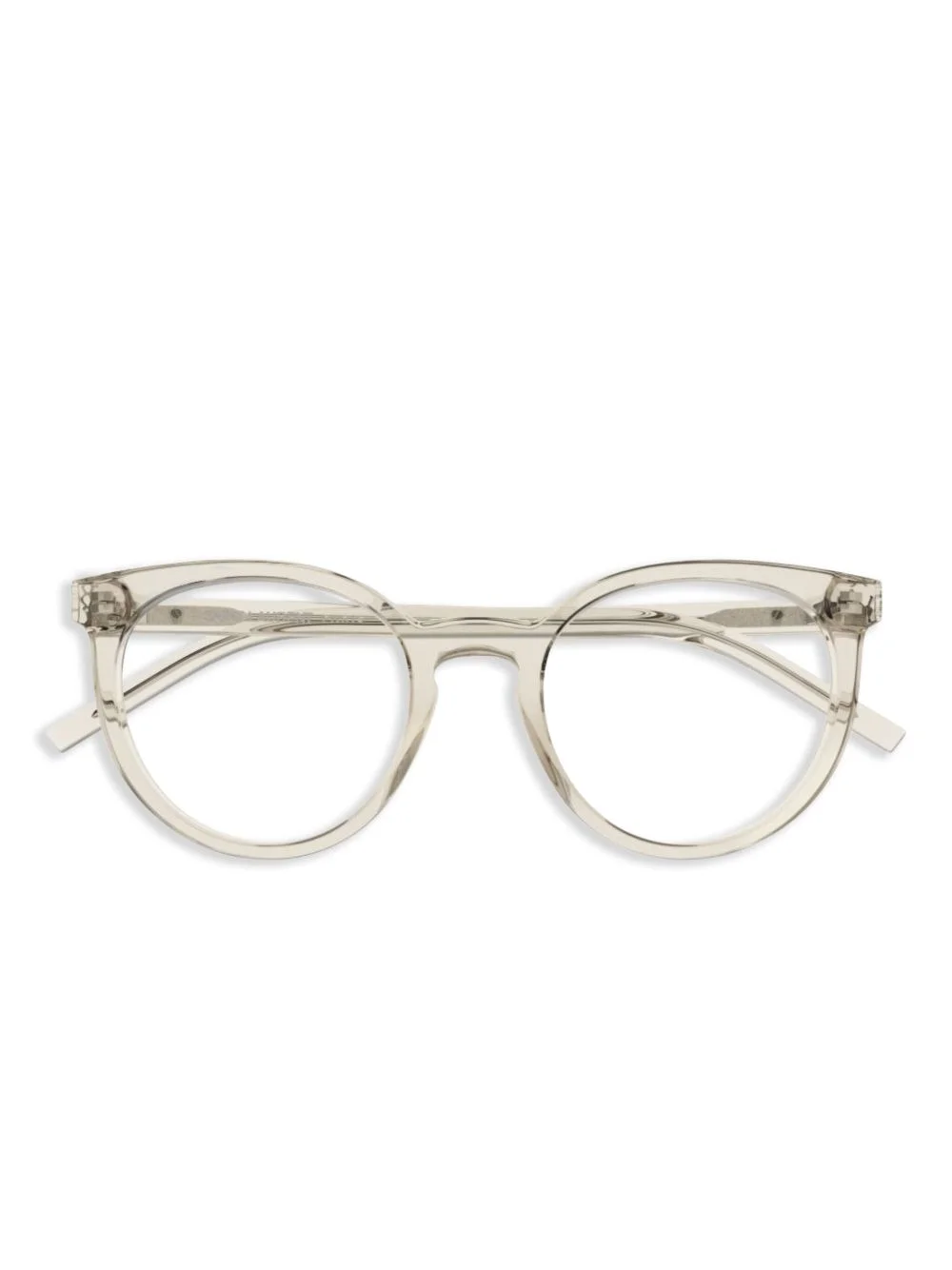round-frame glasses Highlights - Light grey - Transparent design - Curved tips - These glasses come with a protective case. - All glasses from farfetch are sold as non-prescription frames. Made in Italy Composition Acetate 100% SIZE & FIT Measurement Arm Length 5.7 in(14.5 cm) Bridge Width 0.47 in(1.2 cm) Lens Diameter 2.04 in(5.2 cm)