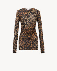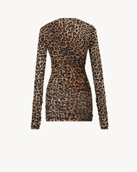 RUCHED MINI DRESS IN LEOPARD TULLE JERSEY