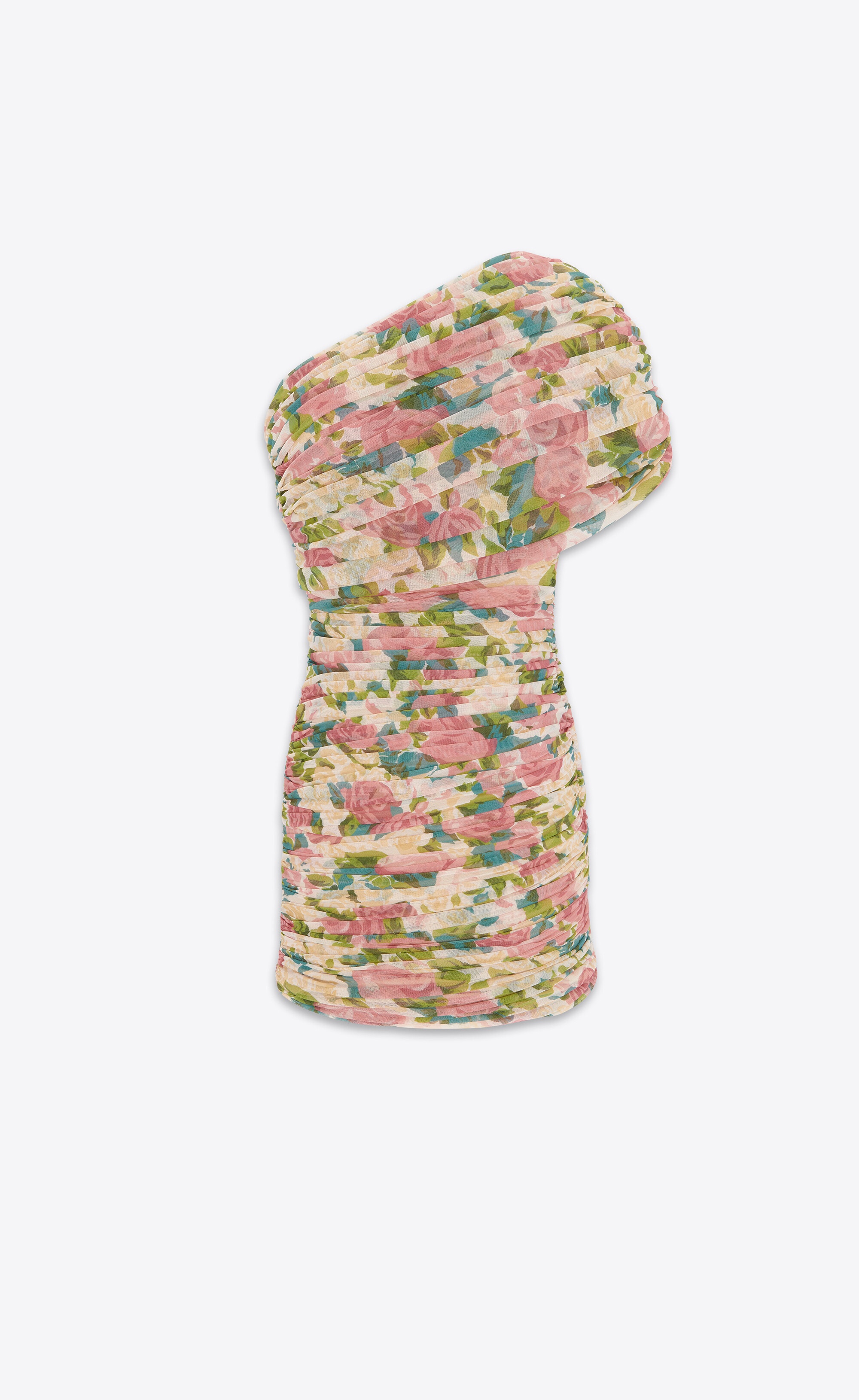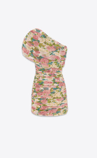 ruched one-shoulder dress in floral tulle