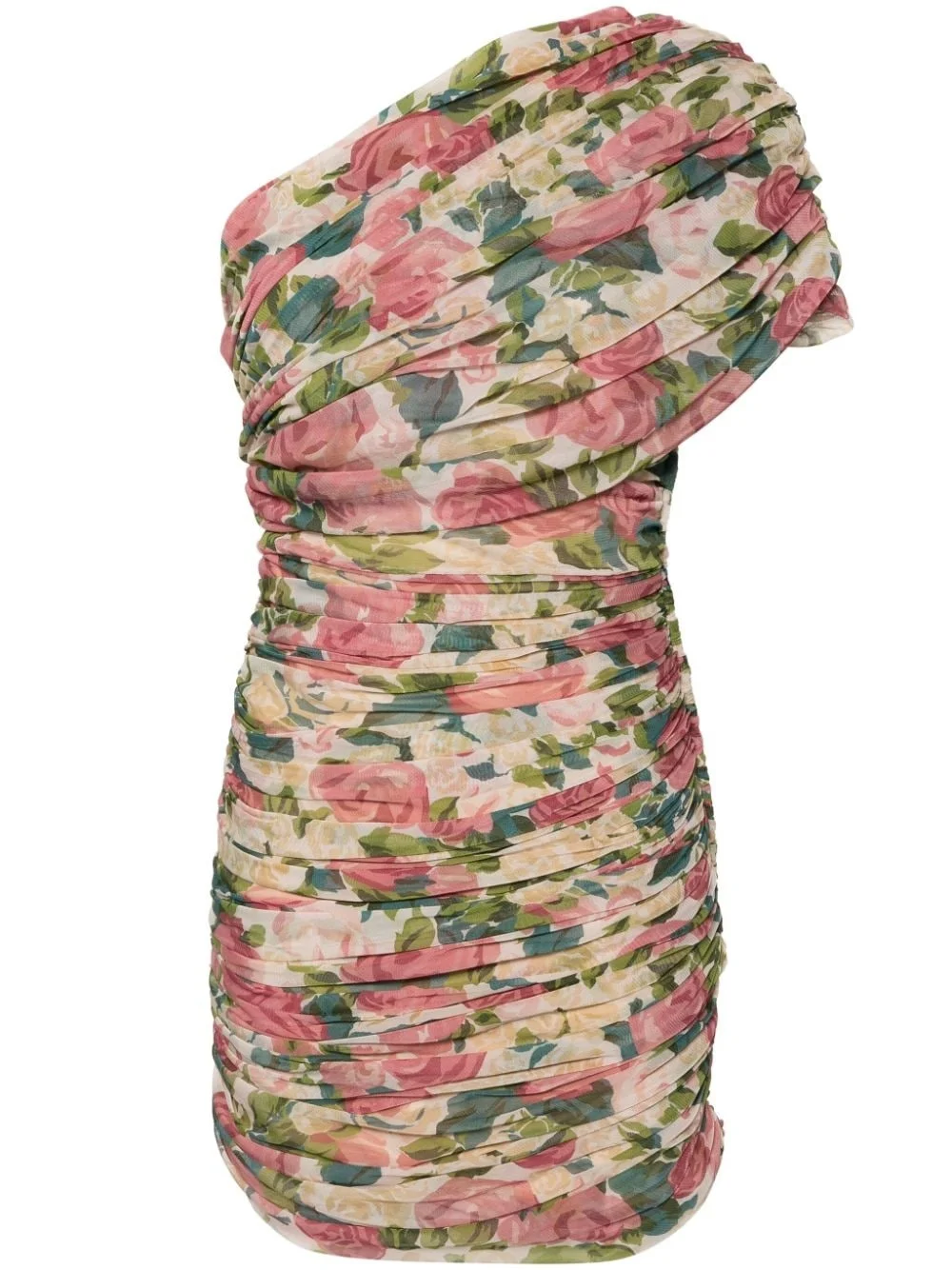 floral-print tulle minidress Highlights - Beige/multicolour - Tulle netting - All-over floral print - Draped design - Ruched detailing - Asymmetric neck - One-shoulder - Single short sleeve - Fitted waistline - Curved hem - Above-knee length - Full lining Made in Italy Composition Lining: Viscose 100% Outer: Polyamide 100% SIZE & FIT Model measurements Height 5 ft 10 in(1.78 m) Bust/Chest 33.07 in(84 cm) Hips 36.61 in(93 cm) Waist 24.8 in(63 cm) FittingInformation Designed for a slim fit that sits just away from the body offering a close yet comfortable fit Made from a midweight stretch fabric, this piece offers elasticity and flexibility when worn This piece fits true to size – take your usual size