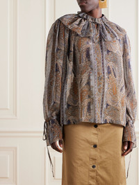 Ruched paisley-print silk blouse Multi