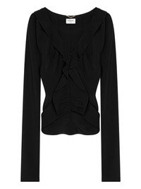 silk blouse Highlights - Black - V-neck - Long sleeves - Ruffled detailing - Cropped Made in France Composition Silk 100% Washing instructions Dry Clean Only