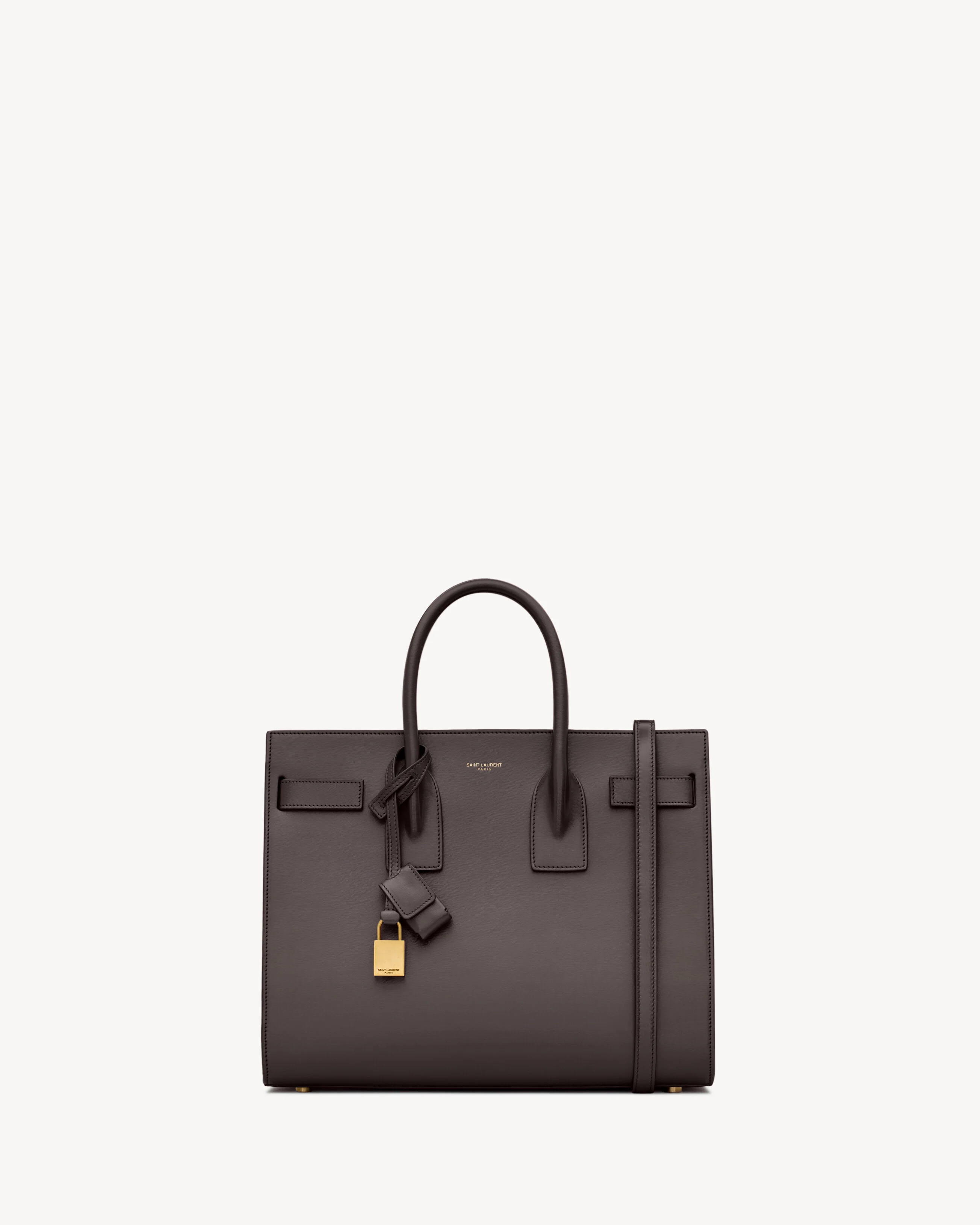 THE SAC DE JOUR IN ITS ICONIC SIZE. SPACIOUS AND LEATHER-LINED, IT OFFERS TWO COMPARTMENTS SEPARATED BY A ZIP POUCH. IT IS DEFINED BY ITS ACCORDION SIDES, COMPRESSION TABS AND BRASS PADLOCK. TOP HANDLES AND A DETACHABLE SHOULDER STRAP PROVIDE BOTH HAND AND SHOULDER CARRY OPTIONS. - CHROME-FREE TANNED LEATHER - LEATHER LINING - BRONZE-TONE HARDWARE - ACCORDION SIDES - DETACHABLE PADLOCK IN LEATHER CASE - ONE ZIP POCKET - FIVE METAL FEET - DIMENSIONS: 32 X 25.5 X 15.5 CM / 12.6" X 10" X 6.1" - HANDLE DROP: 9.5 CM / 3.7" - STRAP DROP: 48 CM / 18.9" - CALFSKIN LEATHER, BRASS - STYLE ID 37829902G9W2899 - MADE IN ITALY