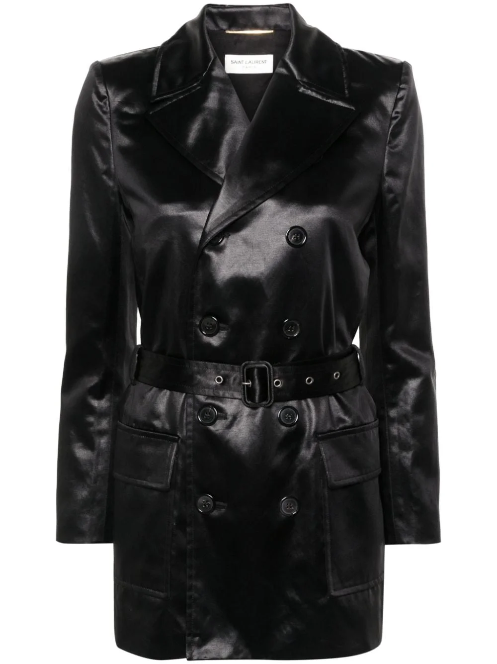 Saharienne double-breasted blazer Highlights - Black - Cotton blend - Satin finish - Notched lapels - Long sleeves - Belt loops - Detachable belt - Two front flap pockets - Silk lining - Straight hem - Double-breasted button fastening Made in Italy Composition Lining: Silk 100% Outer: Cotton 54%, Acetate 46% SIZE & FIT Model measurements Height 5 ft 11 in(1.8 m) Bust/Chest 32.67 in(83 cm) Hips 36.22 in(92 cm) Waist 24.4 in(62 cm) FittingInformation Designed for a slim fit that sits just away from the body offering a close yet comfortable fit The belt offers adjustability for fitted preferences Made from a midweight non-stretch fabric This piece fits true to size – take your usual size
