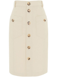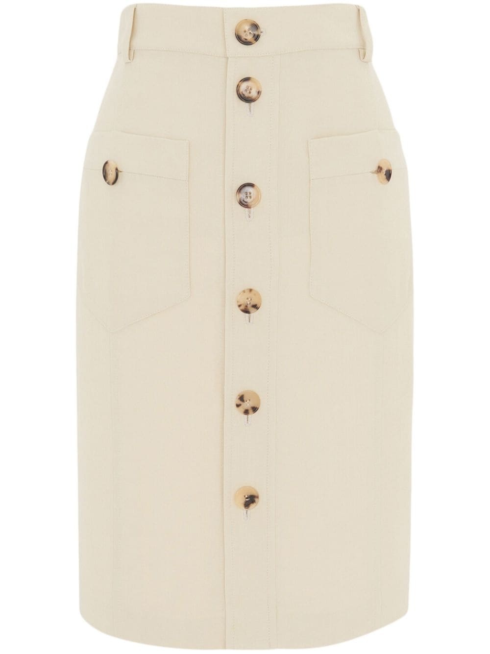 buttoned-up pencil midi skirt Parisian fashion house Saint Laurent was established in the '60s and revolutionised the fashion industry by introducing the ready-to-wear concept, which quickly blended in with the brand's haute couture DNA. Today, tailoring influences and contemporary styles co-exist season after season and are often merged to create pieces such as this midi skirt: it offers a classic pencil silhouette yet is accented with contrasting button-fastening on the front. Highlights - Ivory white - High waist - Belt loops - Front button fastening - Two front patch pockets - Pencil silhouette - Straight hem - Mid-length Made in Italy Composition Viscose 100%