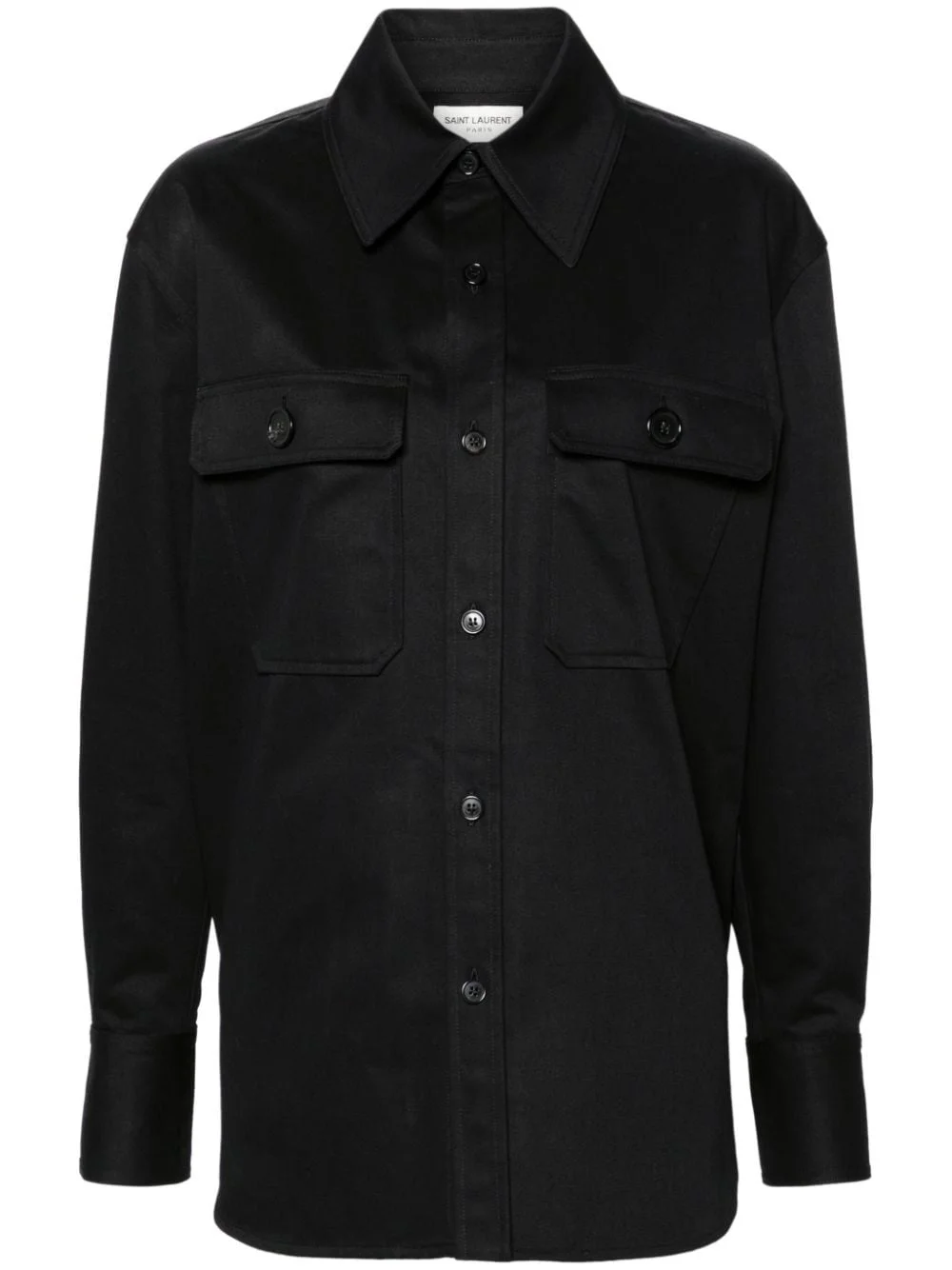 Saharienne twill cotton shirt Highlights - Black - Cotton - Twill weave - Straight-point collar - Front button fastening - Long sleeves - Buttoned cuffs - Curved hem - Two chest flap pockets Made in Italy Composition Cotton 100% SIZE & FIT Model measurements Height 5 ft 9 in(1.75 m) Bust/Chest 34.64 in(88 cm) Hips 36.61 in(93 cm) Waist 26.37 in(67 cm) FittingInformation Designed to be unstructured, offering a loose fit throughout Made from a midweight non-stretch fabric This piece fits true to size – take your usual size
