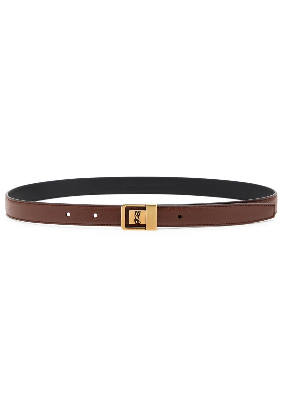 Info & Care Saint Laurent grained leather belt; Designer engraved; Adjustable push-stud fastening; Presented in a designer-stamped pouch; Size & Fit Width: 2cm;