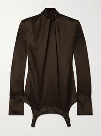 Twisted silk-satin turtleneck mini dress Dark brown