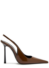 Info & Care Saint Laurent patent leather slingback pumps Heel measures approximately 4 inches/ 100mm Partially elasticated slingback strap, pointed toe Slip-on Size & Fit Narrow across the toe Only available in full sizes, go up to the nearest whole size if you take a half size