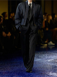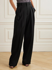 SAINT LAURENT's Spring '25 collection takes inspiration from the house's founder and his uniform of polished, tailored essentials. These pants are crafted from wool and have sharp pleats that trace from the high waist through the wide legs. Size & Fit - Fits true to size, take your normal size - High-rise, cut intended for a wide-leg fit - Unfinished hems; can be altered to a suitable length - Mid-weight, non-stretchy fabric - Model is 177cm/ 5'10" and is wearing a FR 36 Model measurements: - Bust: 85cm/ 33.5" - Waist: 65cm/ 25.5" - Hip: 91cm/ 36" Details & Care - Black wool - Concealed button, hook and zip fastening at front - 100% wool - Dry clean