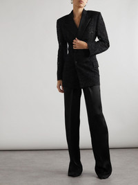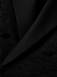 Double-breasted satin-trimmed lace blazer Black