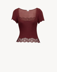 LACED SQUARE-NECK T-SHIRT IN RIBBED SILK JERSEY