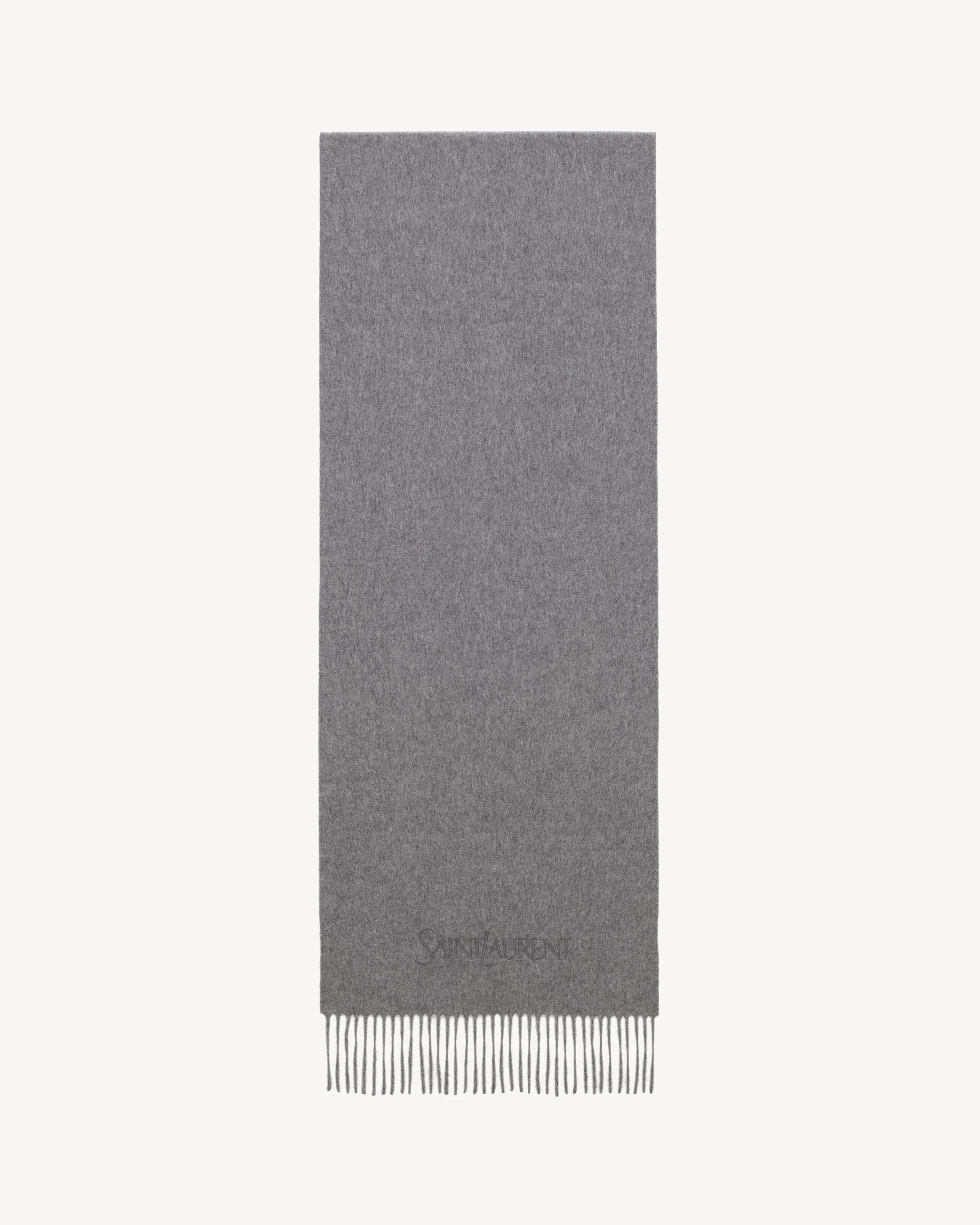 RECTANGULAR JACQUARD SCARF WITH SAINT LAURENT EMBROIDERY. - CERTIFIED CASHMERE - SAINT LAURENT EMBROIDERY - FRINGED ENDS - DIMENSIONS: 35 X 180 CM / 13.8" X 70.9" - 100% CASHMERE - STYLE ID 7951593Y2011200 - MADE IN ITALY
