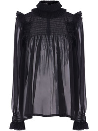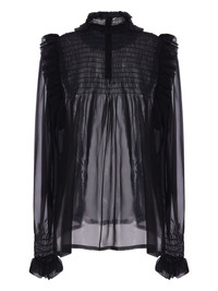 semi-sheer crepe blouse Highlights - Black - Concealed rear zip fastening - High neck - Long puff sleeves - Ruffled detailing Made in Italy Composition Silk 100%