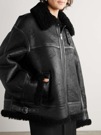 EDITORS'NOTES SAINT LAURENT's jacket draws inspiration from traditional flight styles. It's cut for a slightly loose fit from cozy shearling and has buckles at the collar and hem. SIZE & FIT - Fits true to size, take your normal size - Designed for a slightly loose fit - Firm, non-stretchy shearling - French sizing DETAILS & CARE - Black shearling - Zip fastening through front - 100% shearling (Lamb) - Specialist clean