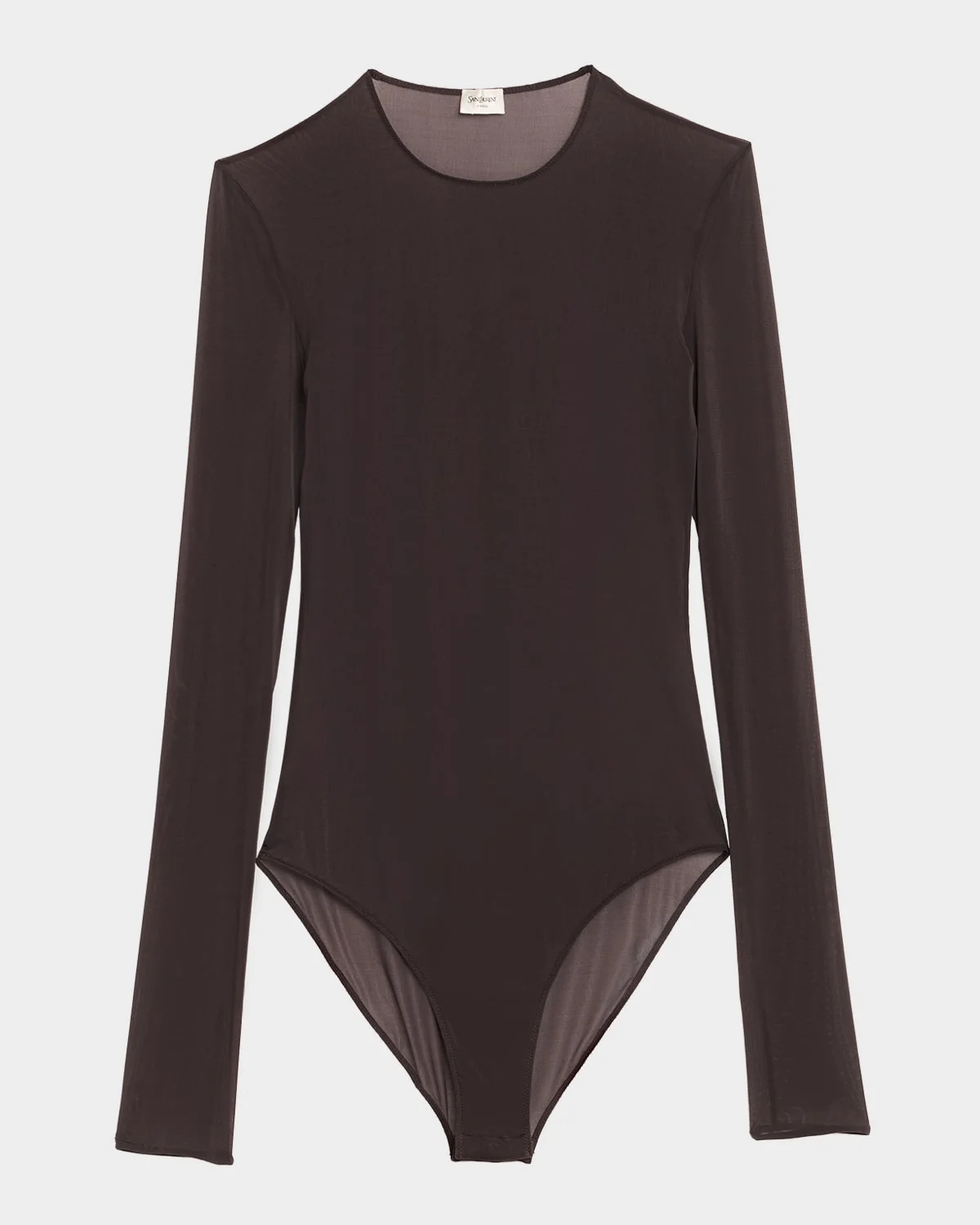 - Saint Laurent bodysuit in sheer knit - Crew neckline - Long sleeves - Fitted - Snap gusset - Cupro/elastane - Made in Italy