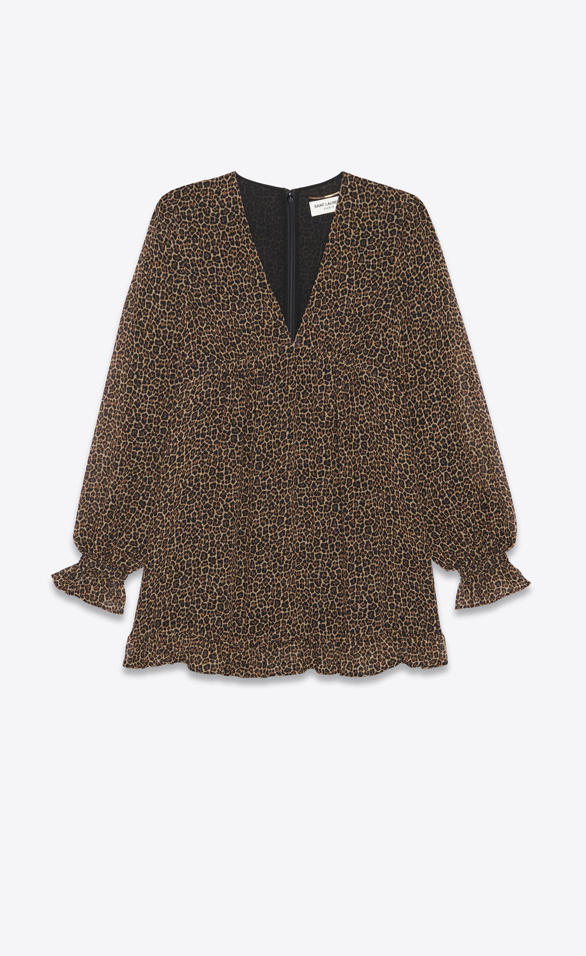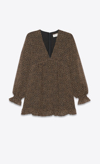 SHORT DRESS WITH A V-NECK AND RUFFLED CUFFS AND HEM, DECORATED WITH A LEOPARD PRINT. - 100% WOOL - SILK LINING - ZIP AND HOOK -AND-EYE CLOSURE AT THE BACK - V-NECK - ELASTICIZED RUFFLE CUFFS - STYLE ID 682087Y871T9665 - MADE IN ITALY