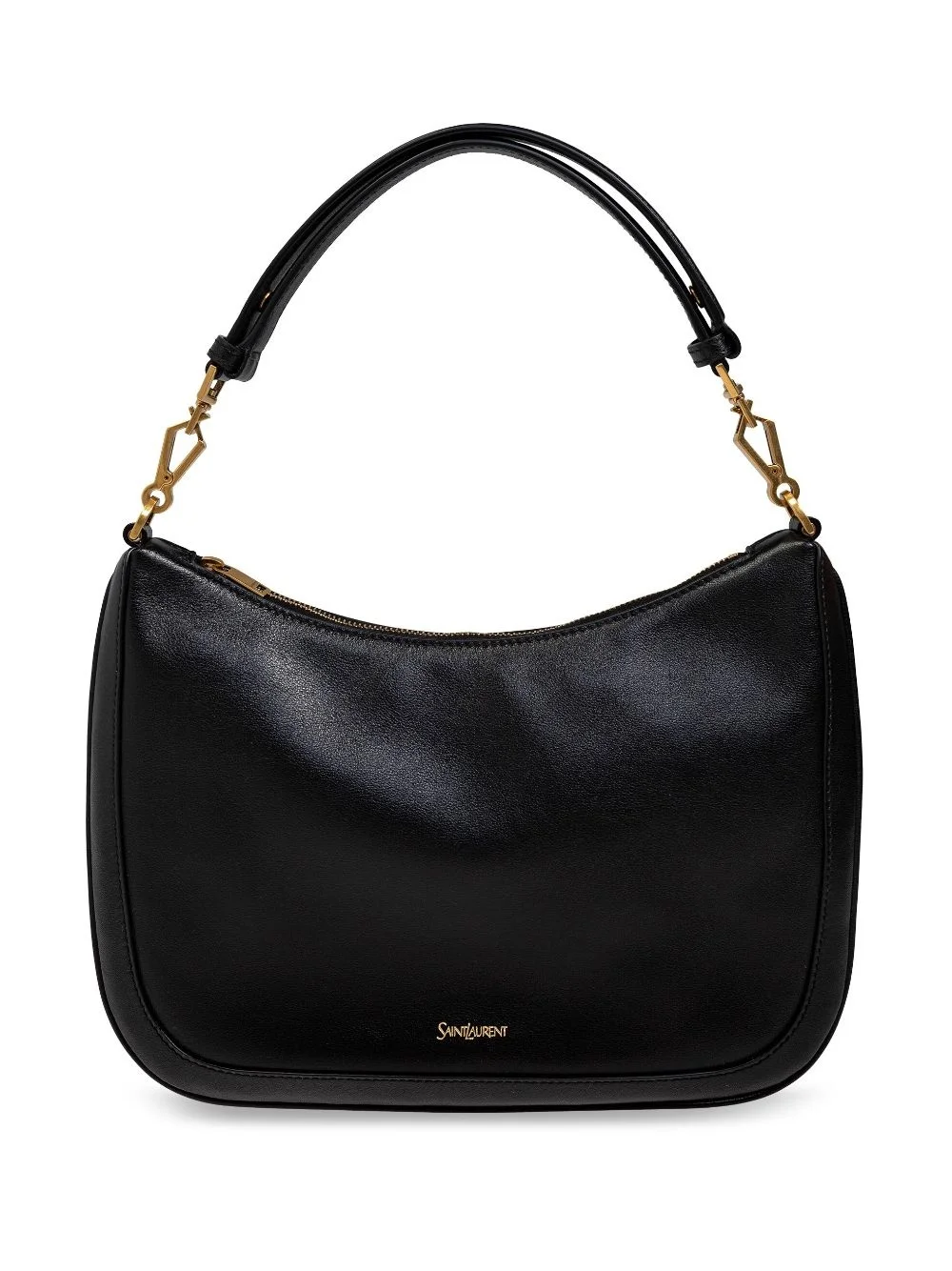 logo-plaque leather tote bag Highlights - Black - Calf leather - Smooth grain - Gold-tone logo plaque - Top zip fastening - Single detachable top handle - Gold-tone hardware - Main compartment - Internal slip pocket - This piece comes complete with a protective dust bag. Made in Italy Composition Outer: Calf Leather 100% SIZE & FIT Measurement DEPTH 0.39 in(0.9 cm) HEIGHT 8.27 in(21 cm) WIDTH 11.22 in(28.4 cm)