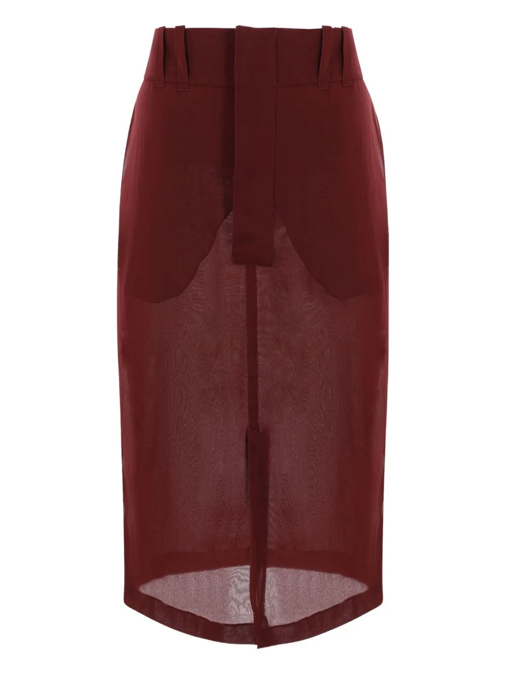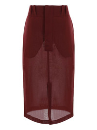silk crepe pencil skirt Highlights - Aubergine - Silk - Crepe de chine - Front button fastening - Semi-sheer construction - Belt loops - Two side inset pockets - Front slit - Two rear flap pockets - Double layer - Unlined - Straight hem - Mid-length Made in Italy Composition Silk 100% SIZE & FIT FittingInformation This midi-length skirt is intended to be worn high on the waist Made from a lightweight non-stretch fabric Washing instructions Dry Clean Only