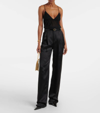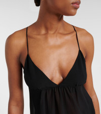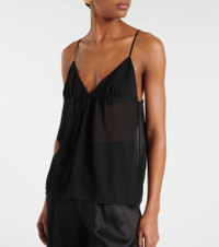Since its conception in 1961, Saint Laurent has been coveted for its elegant Parisian aesthetic. Made in Italy purely from silk georgette, this camisole is a must-have staple for everyday elegance. Product Details - Material: 100% silk - Care instructions: dry clean - Made in Italy - Designer color name: Black - Item color: black - Item number: P01032248 Size & Fit - True to size - Low back - Sheer - Cinched waist - Non-stretchy fabric - Falls to the hip - The model seen in the picture is 178cm-5'10" and wearing a size FR 34