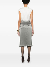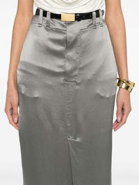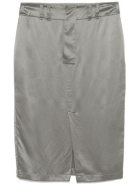 silk midi skirt Highlights - Medium grey - Silk - Satin finish - Concealed front button fastening - Belt loops - Two side inset pockets - Front slit - Two rear flap pockets - Unlined - Pencil silhouette - Straight hem - Mid-length Made in France Composition Silk 100% SIZE & FIT Model measurements Height 5 ft 10 in(1.77 m) Bust/Chest 28.74 in(73 cm) Hips 35.03 in(89 cm) Waist 23.62 in(60 cm) FittingInformation This midi-length skirt is intended to be worn high on the waist Made from a lightweight non-stretch fabric Measurement LENGTH 27.99 in(71.1 cm) WAIST 30 in(76.2 cm) HIPS 37.99 in(96.5 cm)