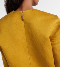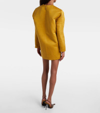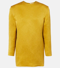 Since its conception in 1961, Saint Laurent has been coveted for its elegant Parisian aesthetic. This modern minidress is crafted from stonewashed silk satin and features a boxy silhouette with sculptural shoulders. Product Details - Material: 100% silk - Care instructions: dry clean - Made in France - Designer color name: Moutarde - Item color: yellow - Lining: 100% silk - Pockets: side slit pockets - Closure: invisible zipper - Item number: P01086637 Size & Fit - True to size - Oversized shoulders - Shoulder pad inserts - Close fit at the hips - Designed for a loose fit - Non-stretchy fabric - The model seen in the picture is 178cm-5'10" and wearing a size FR 36