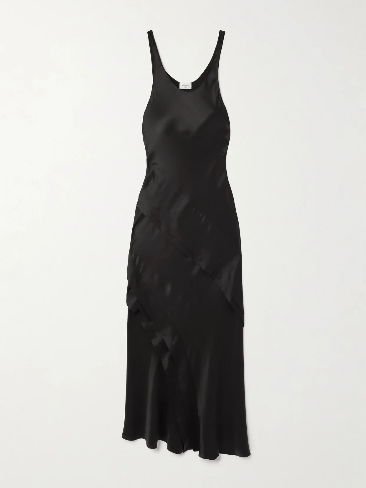 SAINT LAURENT's dress exemplifies the house's signature understated elegance. It's made from lustrous silk-satin in a tiered silhouette that gracefully skims your figure down to the asymmetric hem.