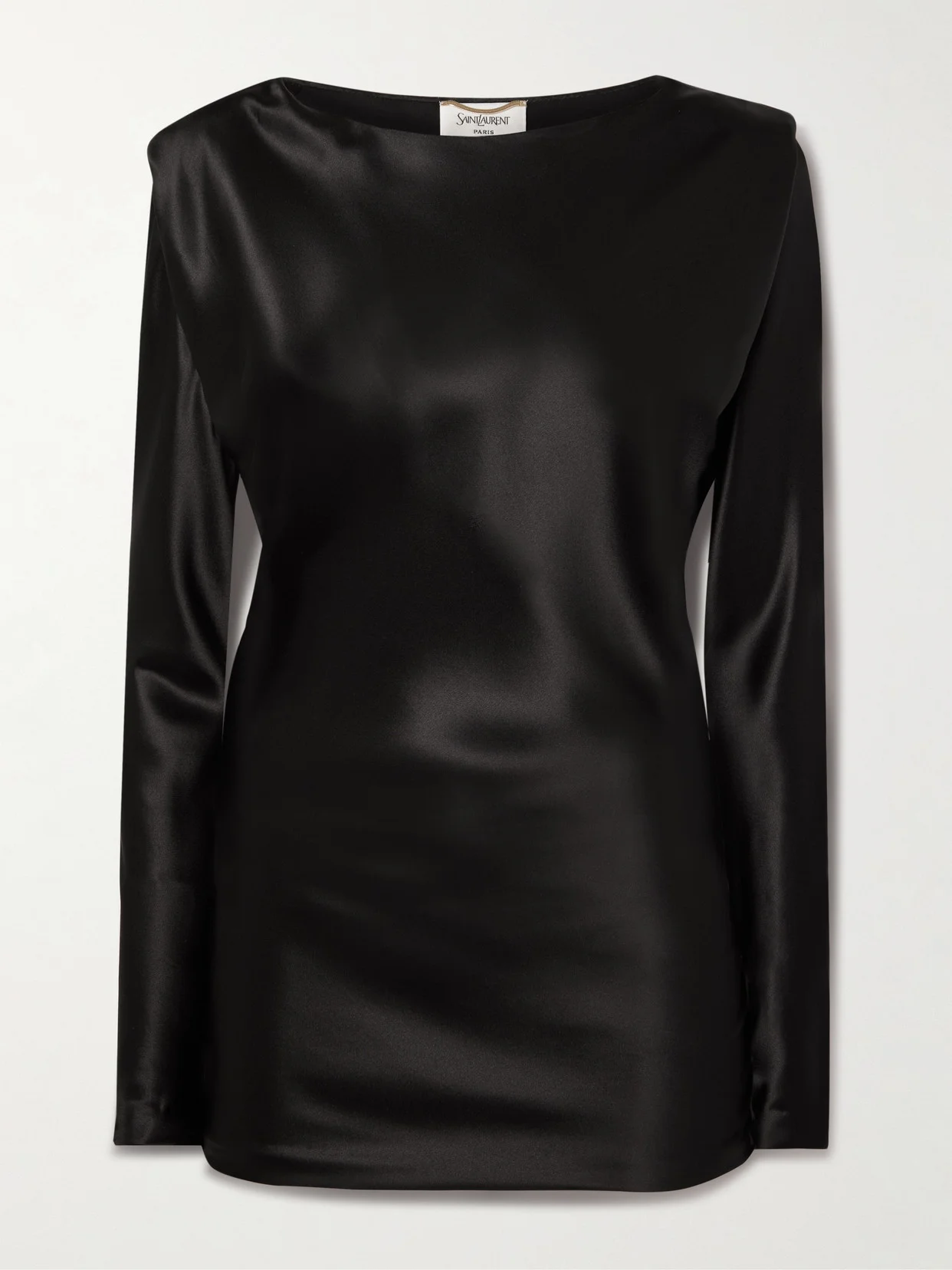 SAINT LAURENT's blouse has a beautiful, shadowy flow. It's draped from silk-satin that's gathered at the top of the sleeves - a subtler take on the '80s power shoulders running through the Fall '25 collection.