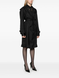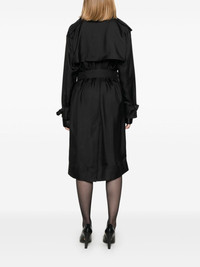 silk trench coat Highlights - Black - Silk - Detachable waist belt - Peak lapels - Double-breasted button fastening - Epaulettes - Long sleeves with belted cuffs - Two side welt pockets - Storm flap - Central rear vent - Straight hem - Knee-length Made in Italy Composition Silk 100% SIZE & FIT Model measurements Height 5 ft 9 in(1.75 m) Bust/Chest 31.88 in(81 cm) Hips 34.64 in(88 cm) Waist 24.01 in(61 cm) FittingInformation Designed to be unstructured, offering a loose fit throughout The belt offers adjustability for fitted preferences Made from a midweight non-stretch fabric This piece fits true to size – take your usual size