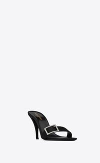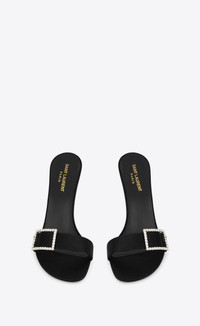 PEEP-TOE MULES WITH STILETTO HEEL AND ROUNDED TOE DECORATED WITH A RHINESTONE BUCKLE. - 72% VISCOSE, 28% SILK - LEATHER SOLE - TOTAL HEEL HEIGHT: 9 CM / 3.5 INCHES - STYLE ID 7553969QN001000 - MADE IN ITALY