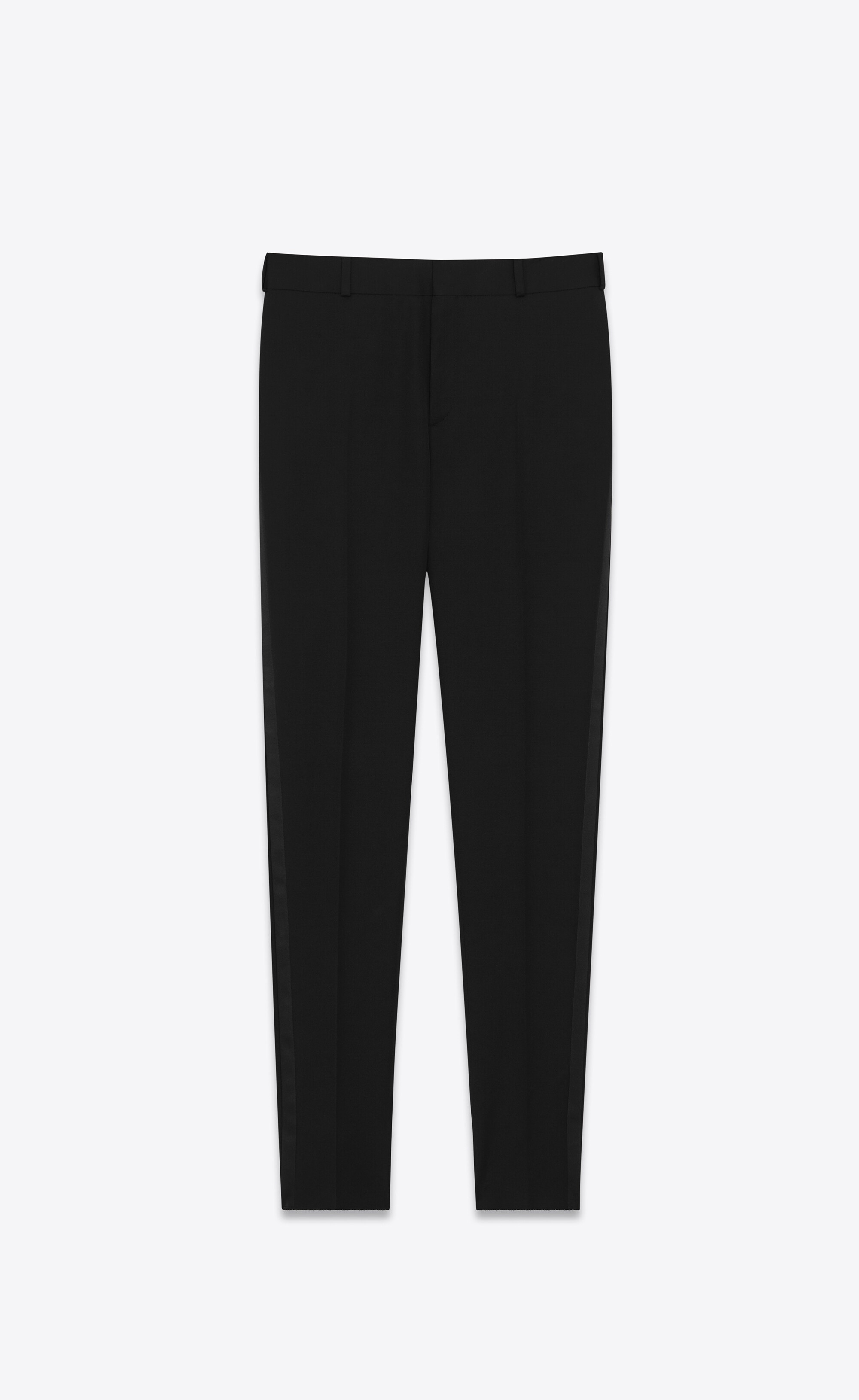 CLASSIC SAINT LAURENT LOW-WAISTED TUXEDO PANT WITH FRONT DARTS, SLASH POCKETS AND BACK WELT POCKETS. - 100% VIRGIN WOOL - BELT LOOPS - STYLE ID 808446530 - MADE IN ITALY