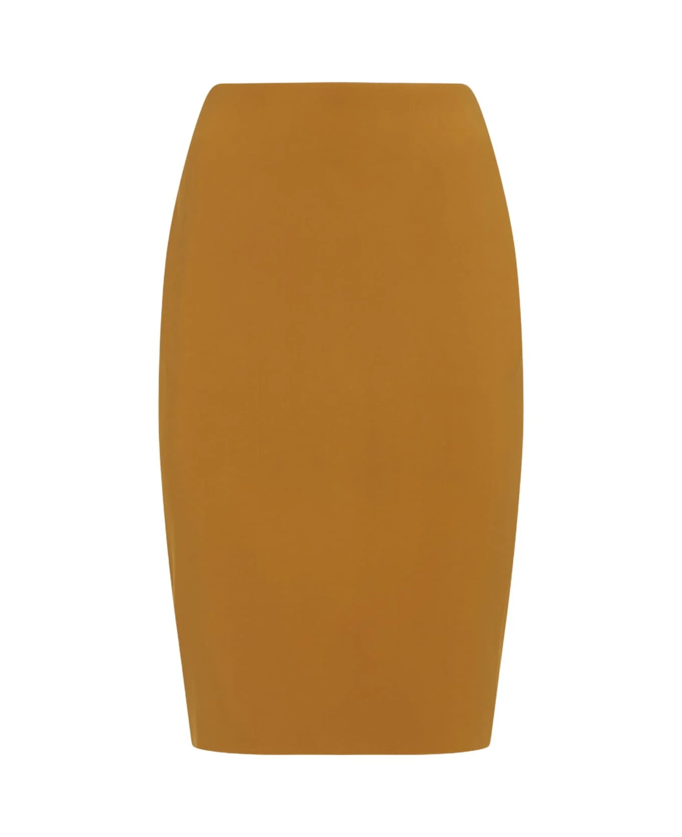 Saint Laurent Ochre Yellow Skirt. Crafted in viscose, cupro and elastane blend. Back gold-tone zipped fastening with signature YSL detail, pencil design, midi-length, straight hem. Made in: France Color: Ocre Model number: 852654Y5J197746