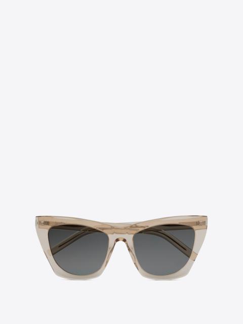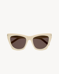 CAT-EYE SUNGLASSES WITH THICK ACETATE FRAMES AND NYLON LENSES. - SAINT LAURENT ENGRAVED TEMPLES - 100% UVA/UVB PROTECTION - FRAMES COMPATIBLE WITH PRESCRIPTION LENSES - LENS: 55 MM / 2.2" - BRIDGE: 20 MM / 0.8" - TEMPLE: 145 MM / 5.7" - CALFSKIN LEATHER - STYLE ID 508654Y99569204 - MADE IN ITALY