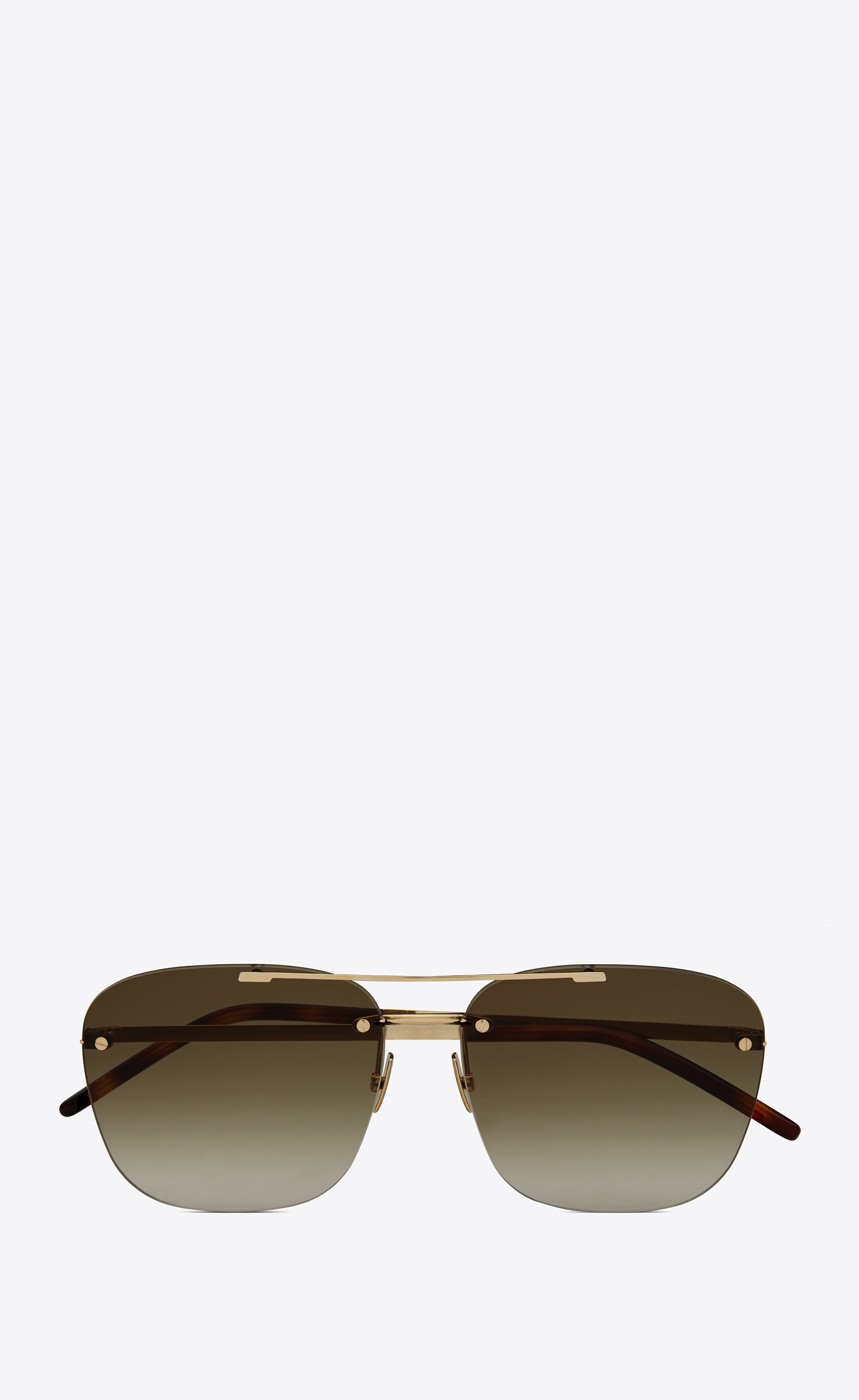 SUNGLASSES WITH RIMLESS METAL AVIATOR FRAME AND NYLON GRADIENT LENSES, FEATURING A SLIM DOUBLE BRIDGE. - 100% METAL - 100% UVA/UVB PROTECTION - SAINT LAURENT ENGRAVED TEMPLES - METAL NOSE PADS - STYLE ID 810047873 - MADE IN ITALY