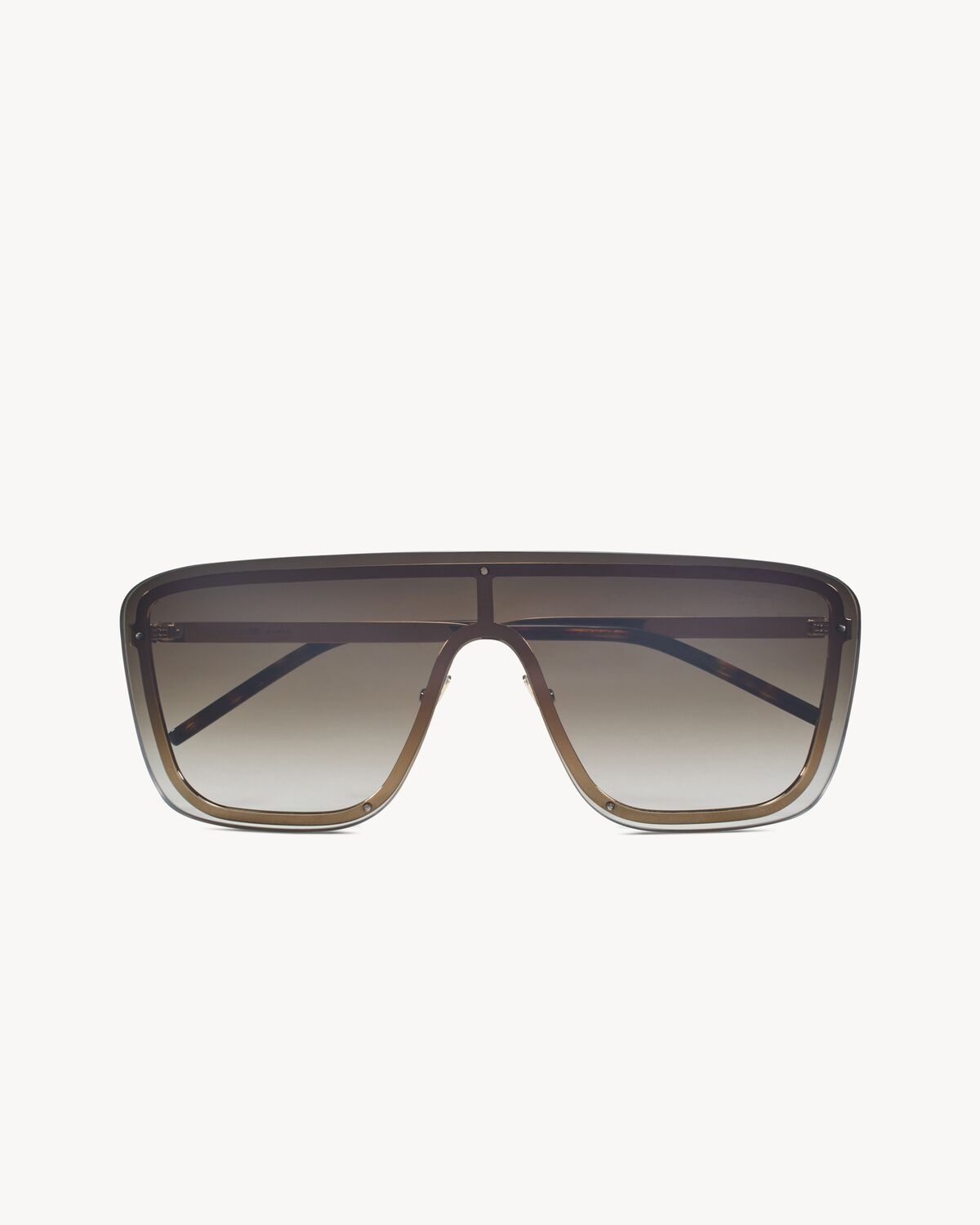 SHIELD SUNGLASSES FEATURING A METAL FRAME AND A NYLON GRADIENT MONOLENSE. - 100% UVA/UVB PROTECTION - FRAMES NOT COMPATIBLE WITH CORRECTIVE LENSES - SAINT LAURENT SIGNATURE ENGRAVED ON THE TEMPLESDIMENSIONS: LENS 99 MM / 3.9", BRIDGE 1 MM / 0.04", TEMPLE 140 MM / 5.5" - METAL - STYLE ID 610923Y99028008 - MADE IN ITALY