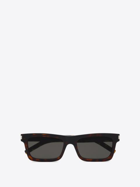 SUNGLASSES WITH RECTANGULAR ACETATE FRAMES AND NYLON LENSES. - 100% UVA/UVB PROTECTION - FRAMES COMPATIBLE WITH PRESCRIPTION LENSES - SAINT LAURENT ENGRAVED TEMPLES - DIMENSIONS:LENS 54 MM / 2.1", BRIDGE 18 MM / 0.7", TEMPLE 145 MM / 5.7" - ACETATE - STYLE ID 660374Y99011000 - MADE IN ITALY