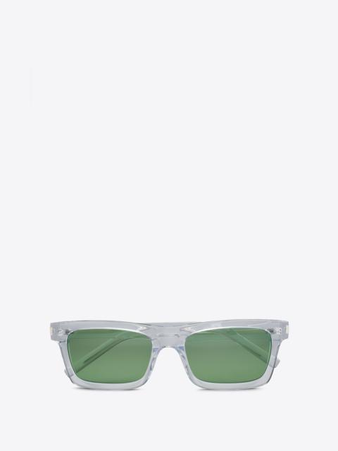 TRANSPARENT SUNGLASSES WITH RECTANGULAR ACETATE FRAMES AND NYLON LENSES, FEATURING SAINT LAURENT ENGRAVED TEMPLES. - 100% ACETATE - 100% UVA/UVB PROTECTION - FRAMES COMPATIBLE WITH PRESCRIPTION LENSES - SAINT LAURENT ENGRAVED TEMPLES - STYLE ID 660374Y99018307 - MADE IN ITALY