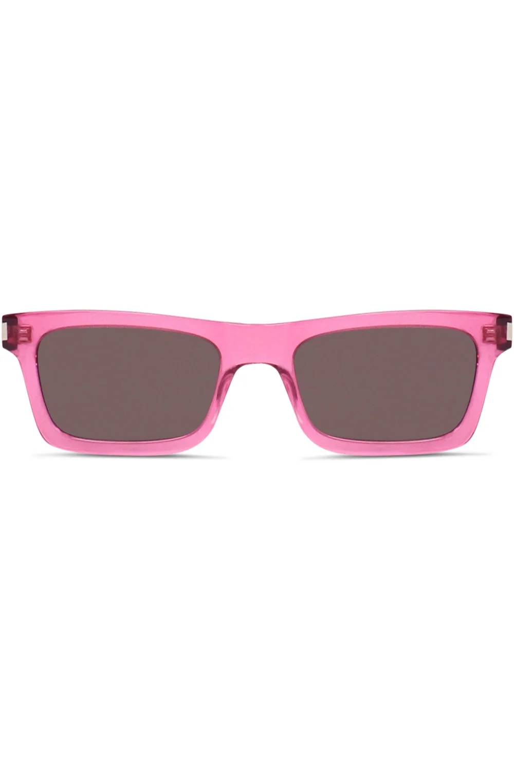 The Saint Laurent SL 461 Sunglasses feature rectangular pink acetate frames, nylon lens and Saint Laurent engraved temples. 100% UV Protection
