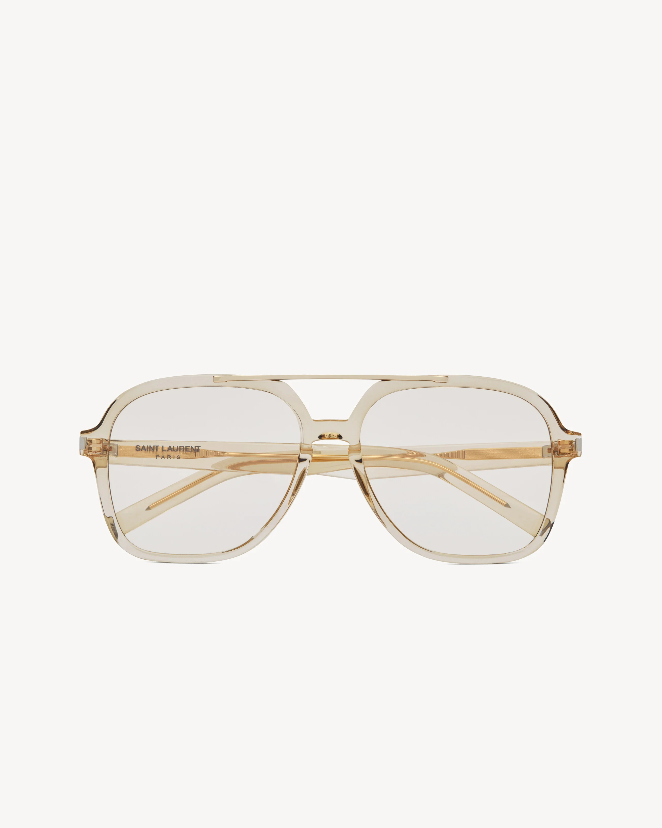 SUNGLASSES WITH GEOMETRIC AVIATOR FRAMES IN ACETATE WITH METAL BRIDGE. - SAINT LAURENT ENGRAVED TEMPLES - 100% UVA/UVB PROTECTION - FRAMES COMPATIBLE WITH CORRECTIVE LENSES - DIMENSIONS: LENS: 58 MM / 2.3", BRIDGE: 16 MM / 0.6", TEMPLE: 145 MM / 5.7" - ACETATE - STYLE ID 701422Y99039303 - MADE IN ITALY