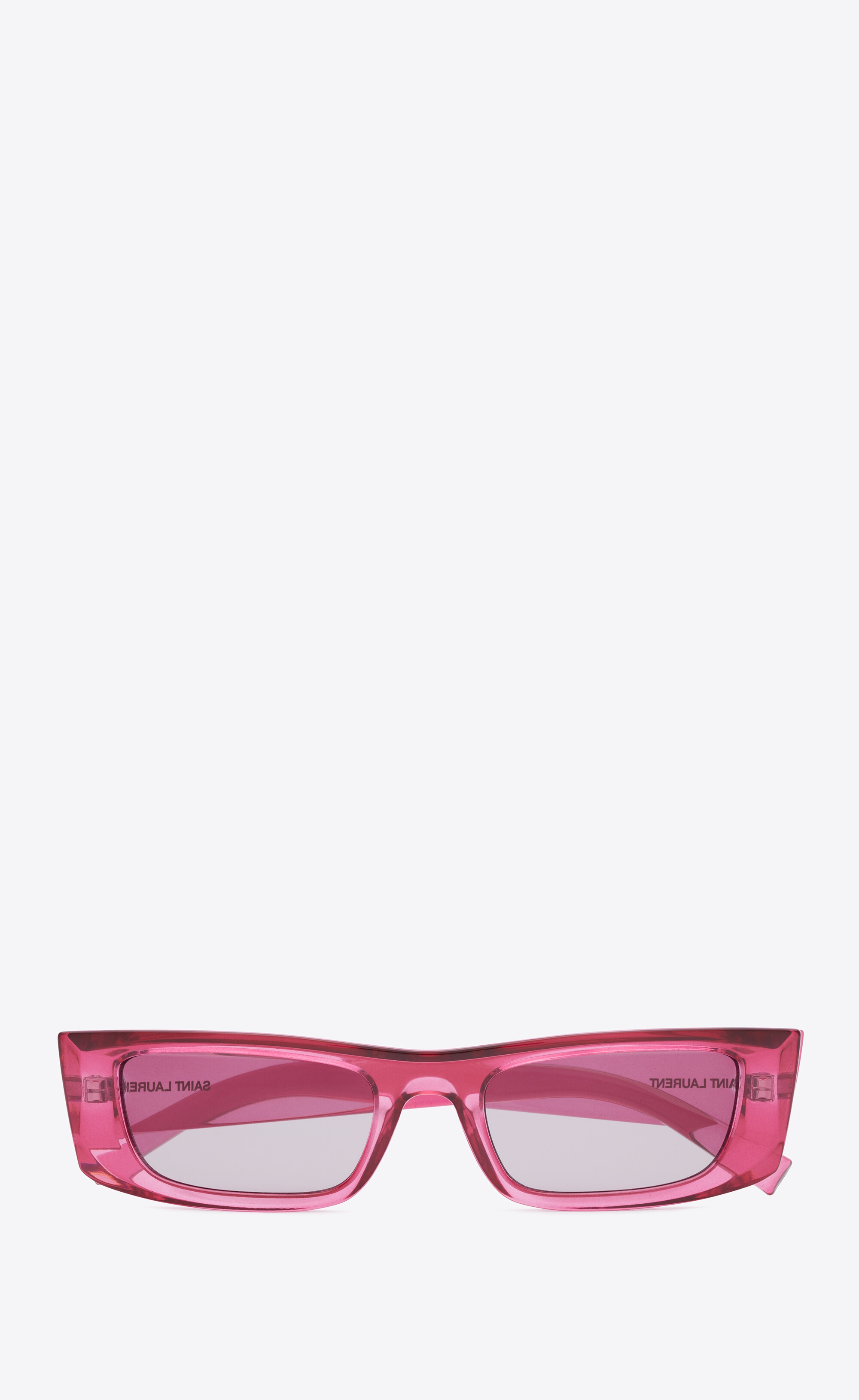 SUNGLASSES WITH ELONGATED RECTANGULAR CAT-EYE FRAMES IN ACETATE, WITH NYLON LENSES AND A SAINT LAURENT SIGNATURE AT THE TEMPLE. - 100% ACETATE - SAINT LAURENT ENGRAVED TEMPLES - 100% UVA/UVB PROTECTION - FRAMES COMPATIBLE WITH CORRECTIVE LENSES - STYLE ID 810827938 - MADE IN ITALY