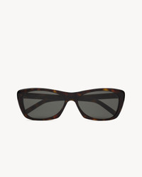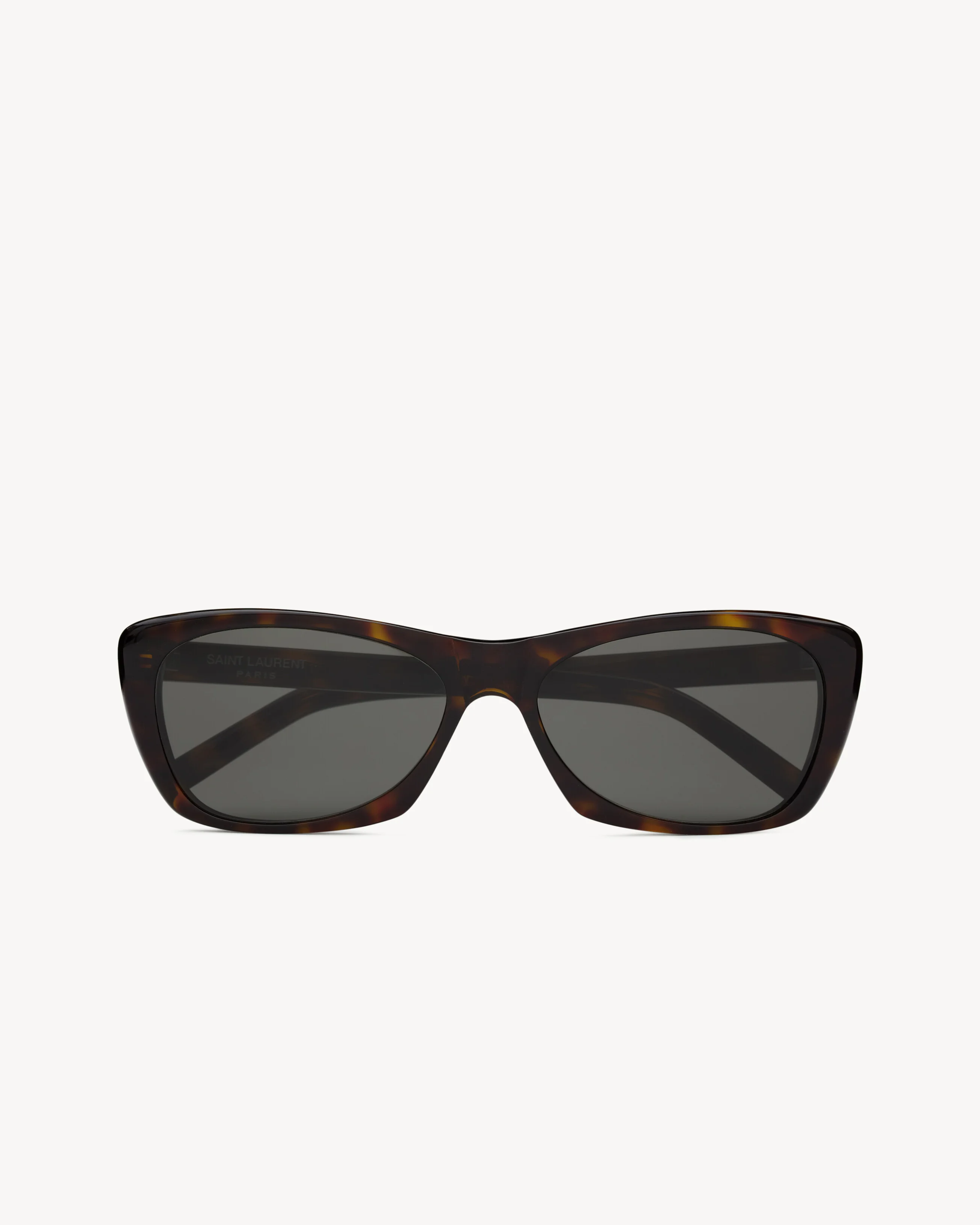 TORTOISESHELL CAT-EYE SUNGLASSES WITH RECTANGULAR ACETATE FRAMES AND NYLON LENSES. - SAINT LAURENT ENGRAVED TEMPLES - 100% UVA/UVB PROTECTION - FRAMES NOT COMPATIBLE WITH PRESCRIPTION LENSES - LENS: 58 MM / 2.3" - BRIDGE: 16 MM / 0.6" - TEMPLE: 140 MM / 5.5" - 80% RECYCLED ACETATE, 20% BIO NYLON - STYLE ID 758444Y99562338 - MADE IN ITALY