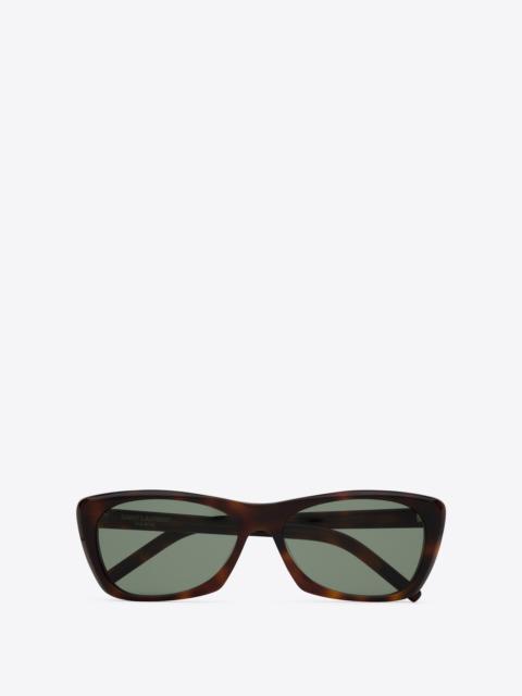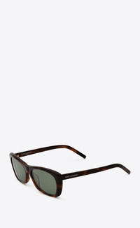 TORTOISESHELL SUNGLASSES WITH RECTANGULAR CAT-EYE FRAMES IN ACETATE AND NYLON LENSES. - 80% RECYCLED ACETATE, 20% BIO NYLON - SAINT LAURENT ENGRAVED TEMPLES - 100% UVA/UVB PROTECTION - FRAMES NOT COMPATIBLE WITH CORRECTIVE LENSES - STYLE ID 813089352 - MADE IN ITALY