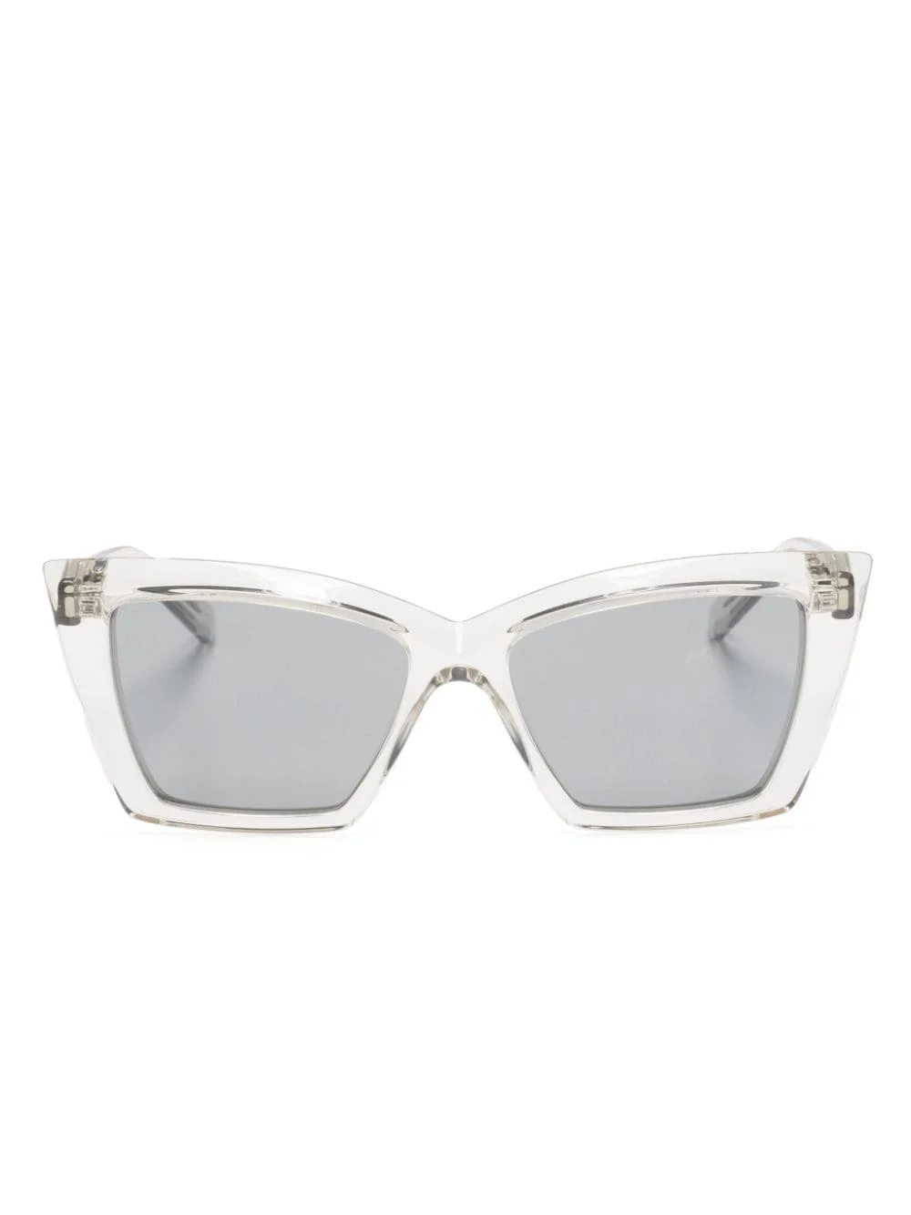 butterfly-frame sunglasses Highlights - Transparent design - Acetate - Transparent frame - Butterfly frame - Grey tinted lenses - Logo print at the arm - Straight arms with curved tips - These glasses come with a protective case. Made in Italy Composition Acetate 100% SIZE & FIT Measurement Arm Length 5.51 in(14 cm) Bridge Width 0.62 in(1.6 cm) Lens Diameter 2.12 in(5.4 cm) WIDTH 5.7 in(14.5 cm)