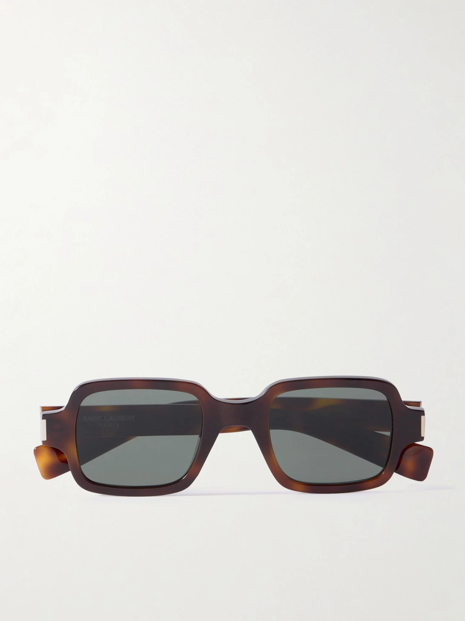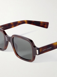 SAINT LAURENT Eyewear's sunglasses are made from glossy tortoiseshell acetate in a distinct square shape. Fitted with dark-gray lenses, they're engraved with the logo at the temple and have subtle silver-tone accents. Details & Care - Tortoiseshell acetate - Come with a case - 100% UV protection