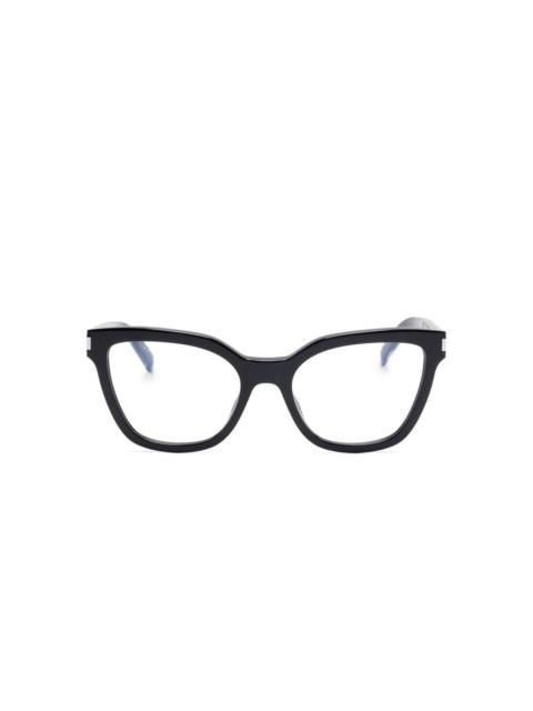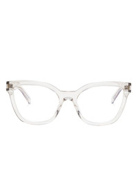 SL 748 glasses Highlights - Transparent design - Cat-eye frame - Clear lenses - Logo plaque at the arm - Straight arms - Curved tips - All glasses from farfetch are sold as non-prescription frames. Made in Italy Composition Acetate 100% SIZE & FIT Measurement Arm Length 5.7 in(14.5 cm) Bridge Width 0.74 in(1.9 cm) Lens Diameter 2.12 in(5.4 cm) Total Width 5.59 in(14.2 cm)
